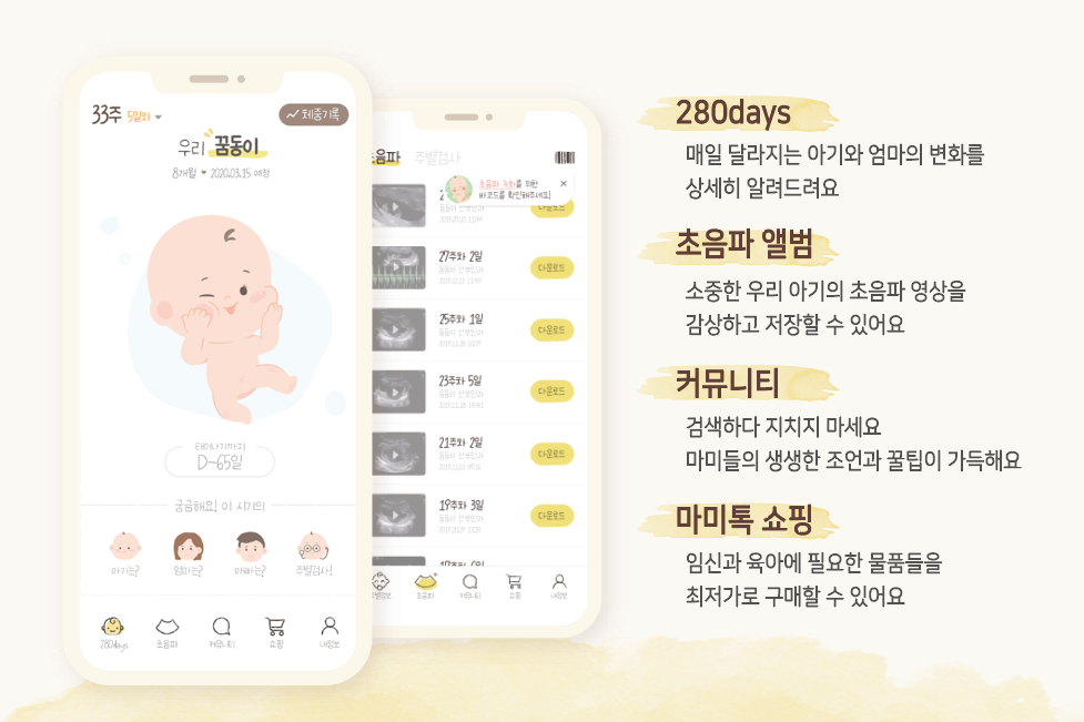 산모들은 ‘마미톡’ 애플리케이션을 통해 초음파 진료 후 녹화된 영상을 다시 시청할 수 있다. 마미톡의 태아 초음파 영상은 독보적인 기술력으로 타 업체 대비 네 배 이상 선명한 화질과 실시간 전송 속도를 자랑한다. 또한 산모수첩 ‘280days’ 기능을 통해 임신 주차 별 태아의 성장 과정과 엄마ㆍ아빠에게 유익한 정보를 제공한다.