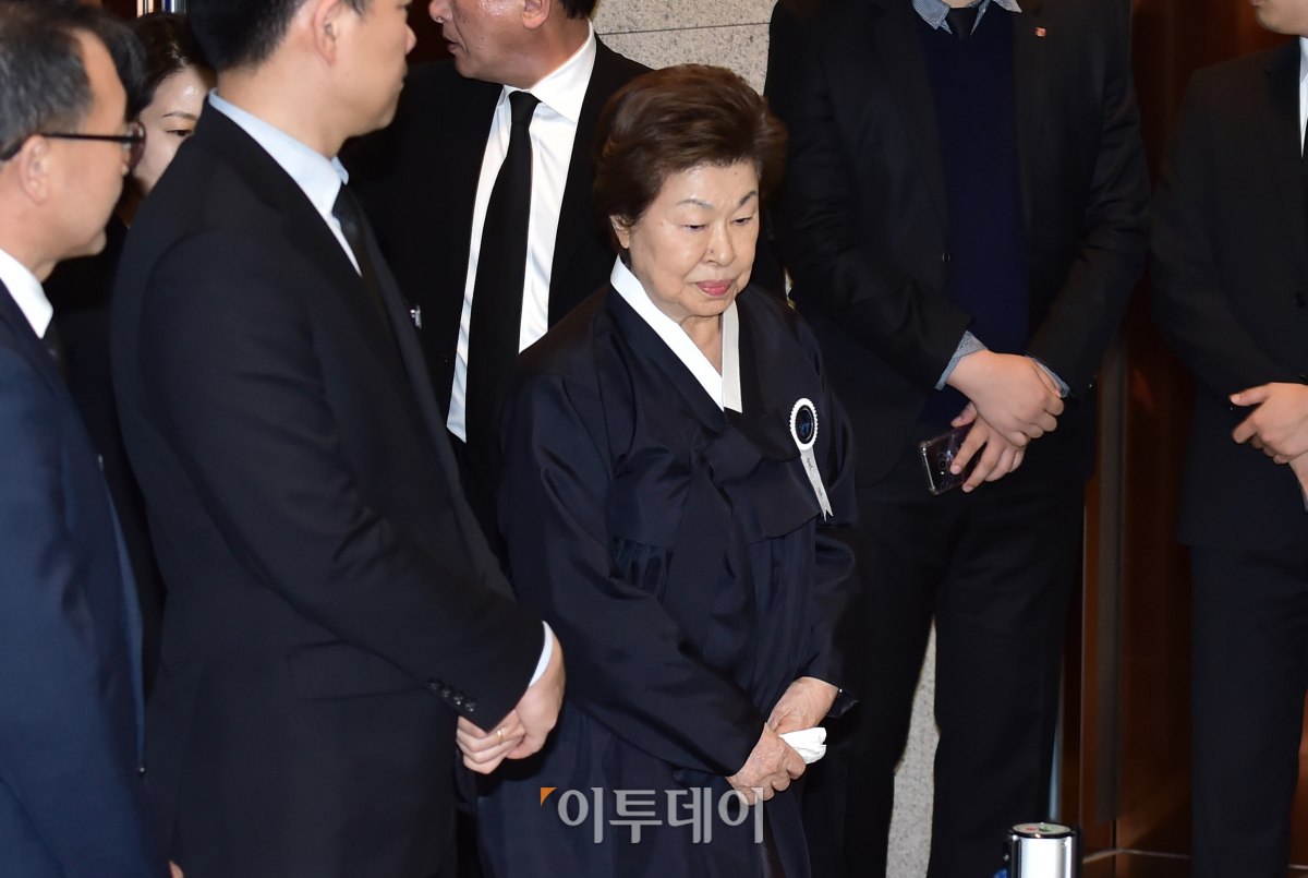 신 명예회장 부인인 시게미쓰 하츠코 여사가 20일 서울 송파구 올림픽로 서울아산병원에 마련된 신격호 롯데그룹 명예회장의 빈소에 들어서고 있다.