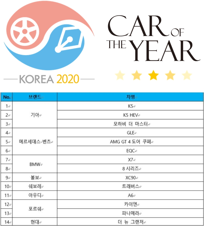 29일 2020 COTY 후반기 심사에 이어 내달 13일 경기 화성에 있는 한국교통안전공단 자동차안전연구원(KATRI)에서 최종 심사를 진행하고, 20일 시상식을 개최한다.
