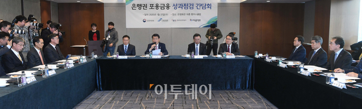 은성수 금융위원장이 22일 서울 중구 명동 은행회관에서 열린 ‘은행권 포용금융 성과점검 간담회’에서 모두발언을 하고 있다.