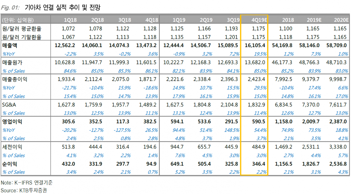 그는 “기아차의 4분기 매출액은 16조1000억 원으로 전년 대비 19.5% 늘었다”며 “중국을 제외한 연결 대상 지역의 도매판매는 같은 기간 9.5% 늘어난 66만9000대를 기록했고, 내수는 셀토스, K7, 모하비 등을 앞세운 신차 효과가 판매량 5.8% 호조를 견인했다”고 분석했다.