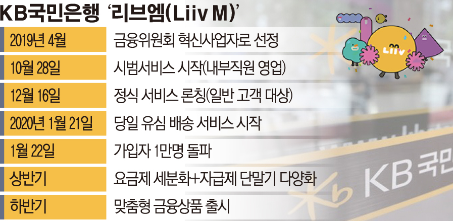 윤 회장은 올해 신년사에서 “KB의 미래성장을 이끌어 나갈 신수익원 확보에 앞장서겠다”며 “리브엠을 통해 서로 다른 업종과의 협업 성공 사례도 만들어 나갈 것”이라고 강조했다. 리브엠은 지난해 4월 금융위원회로부터 1차 혁신금융 서비스(금융규제 샌드박스)로 지정된 금융·통신 융합서비스다. KB금융이 LG유플러스와 협업해 알뜰폰 서비스를 시작하는 것으로 금융업계 최초의 통신서비스다.