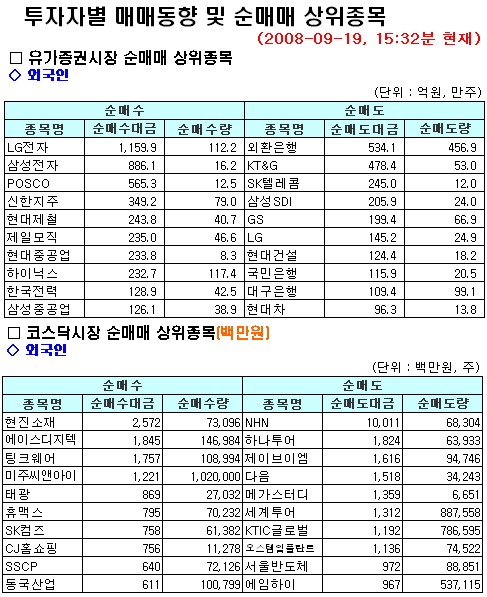 반면 HSBC가 인수를 포기한 외환은행(534억원)이 순매도 상위에 올랐고 그 외에 KT&G(478억원), SK텔레콤(245억원), 삼성SDI(205억원), GS(199억원), LG(145억원), 현대건설(124억원) 등을 팔았다.