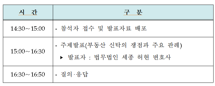 이번 세미나는 부동산 신탁의 쟁점과 주요 판례를 살펴보고 시사점을 짚어보기 위해 마련됐다. 국내 주요 건설사 임직원 등을 대상으로 하며, 주제 발표는 법무법인 세종의 허현 변호사가 맡는다.