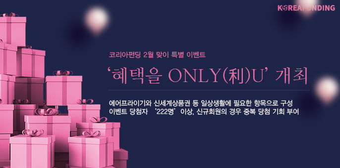 이번 이벤트는 ‘오직(Only) 코리아펀딩 회원만이 누릴 수 있는 이(利)익’이라는 콘셉트를 기반으로 기획됐다.
