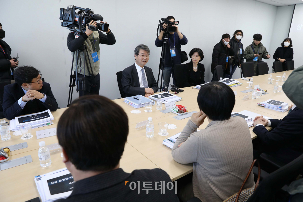 김지형 삼성 준법감시위원회 위원장이 5일 오후 서울 서초구 삼성생명 사옥에서 열린 삼성 준법감시위원회 1차 회의를 주재하고 있다.