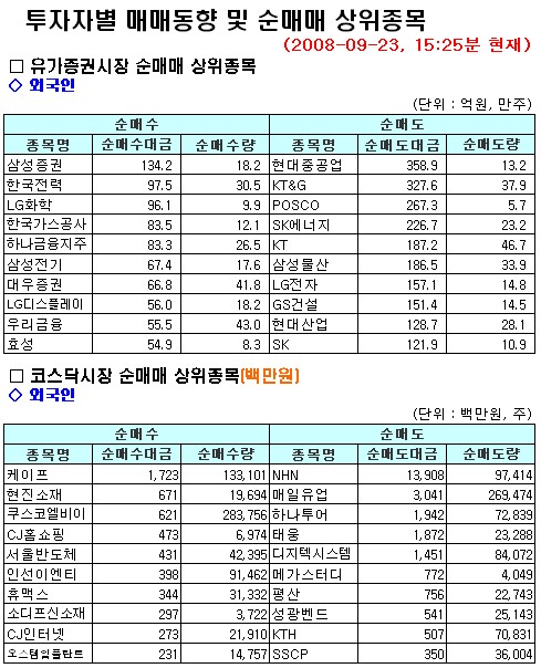 반면 전일 리먼브라더스의 인수설이 나왔던 삼성증권(134억원)을 가장 많이 사들였고 그 외에 한국전력(97억원), LG화학(96억원), 한국가스공사(83억원), 하나금융지주(83억원), 삼성전기(67억원) 등을 순매수했으나 규모는 적었다.