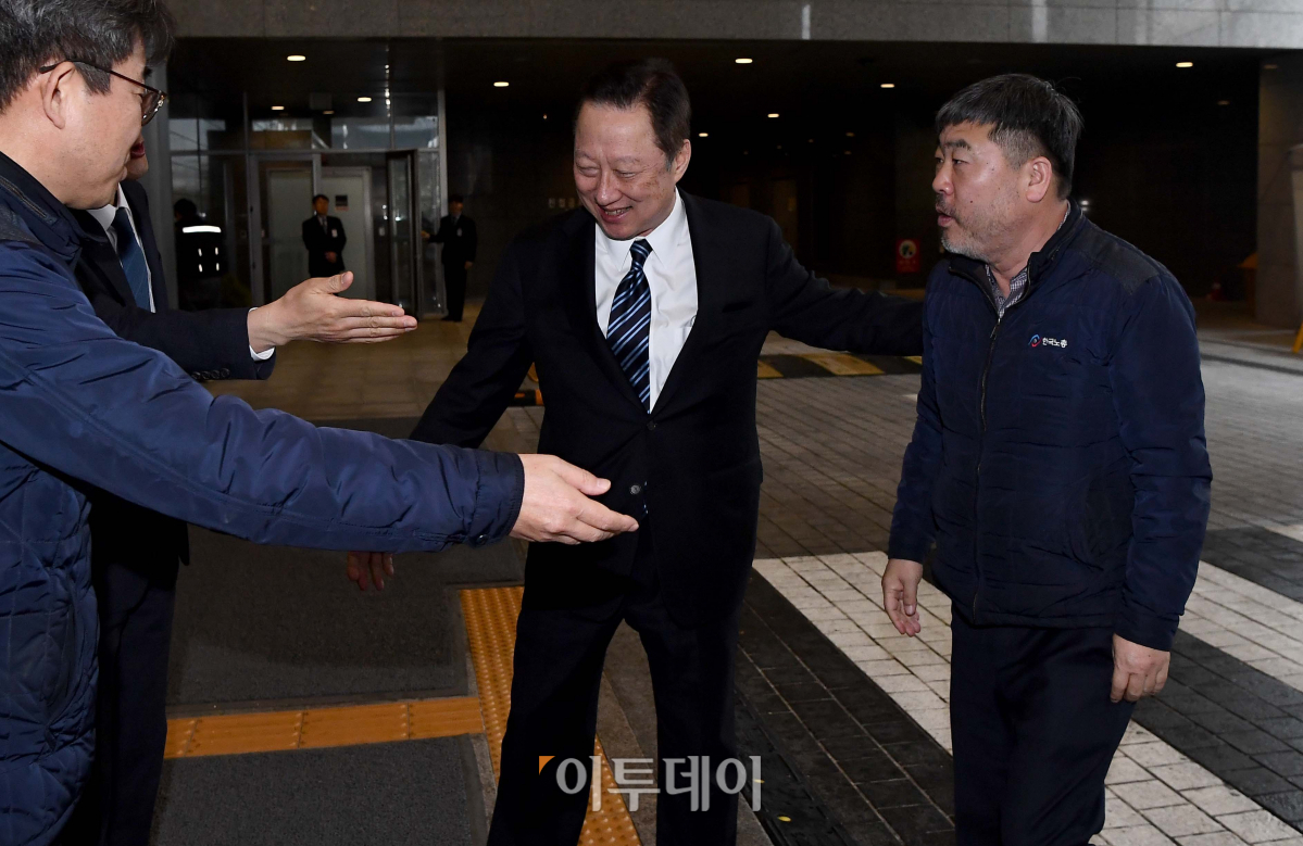[포토] 김동명 위원장 안내하는 박용만 회장