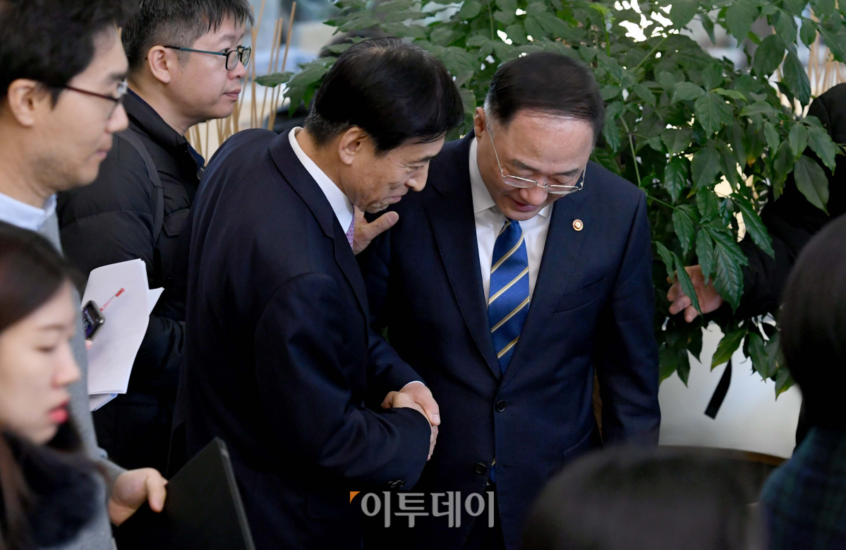 [포토] 홍남기-이주열 '악수하는 경제사령탑'