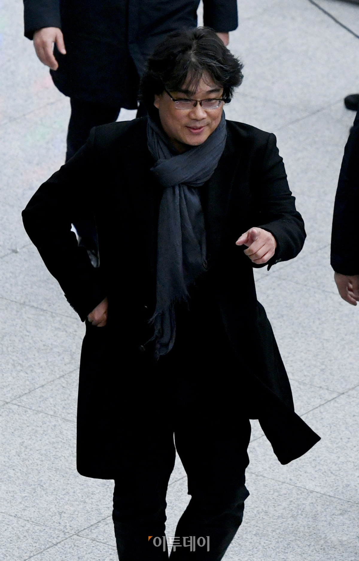 영화 ‘기생충’으로 세계 최고 권위의 영화 시상식인 미국 아카데미 시상식에서 작품상 등 4관왕을 차지한 봉준호 감독이 16일 인천 중구 인천국제공항을 통해 귀국하고 있다.