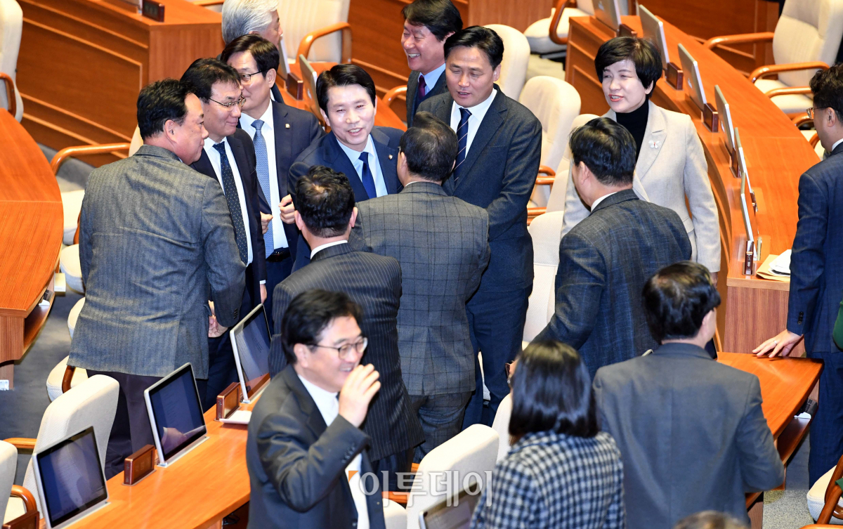 [포토] 동료 의원들과 인사하는 이인영 더불어민주당 원내대표