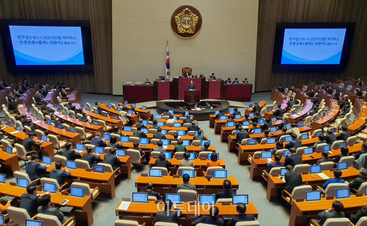 이인영 더불어민주당 원내대표가 18일 서울 여의도 국회에서 열린 본회의에서 교섭단체 대표연설을 하고 있다.