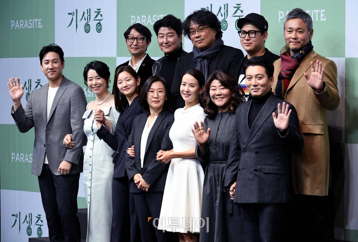 영화 ‘기생충’으로 세계 최고 권위의 영화 시상식인 미국 아카데미 시상식에서 작품상 등 4관왕을 차지한 봉준호 감독과 배우, 제작진이 19일 서울 중구 소공로 웨스틴조선호텔에서 열린 기자간담회에서 포토타임을 갖고 있다.