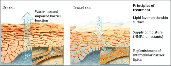 JDDG에 게재 된 바이어스도르프 사 Dr. Weber 박사의 연구 결과에 따르면, 세라마이드 성분을 함유한 포뮬러는 수분 공급 효과는 있지만 손상된 각질층 사이로 수분이 계속 새어 나가는 경피수분손실 (Transepidermal water loss, TEWL) 개선에는 효과를 보이지 않았다. 그러나 우레아를 포함해 다른 자연 보습인자 (Natural Moisturizing Factor, NMF)를 함유한 포뮬러는 효과적인 수분 공급뿐만 아니라, 피부 각질층 사이로 수분이 빠져나가는 것을 방지하여 깊은 보습과 수분 손실 개선에도 뛰어난 효과를 보이는 것으로 나타났다. 우레아는 자연 보습인자로서, 피부에 즉각적인 수분 공급뿐 아니라 수분 손실을 개선해 건조한 피부를 근본적으로 재생시켜주는 핵심 성분으로 나타났다.