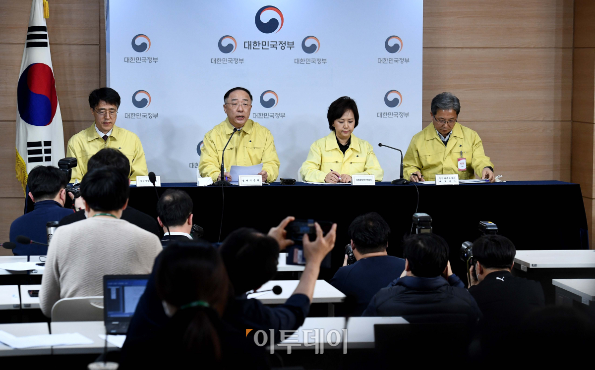홍남기 부총리 겸 기획재정부 장관이 27일 서울 종로구 정부서울청사에서 마스크 수급 안정관련 브리핑을 갖고 있다.