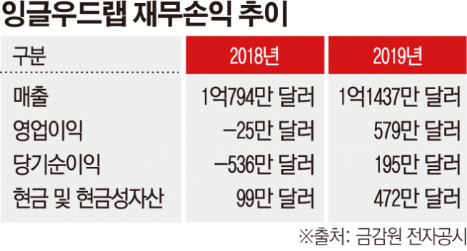 잉글우드랩의 지난해 현금및현금성자산은 약 472만 달러(55억 원)로, 100만 달러에도 미치지 못했던 전년 대비 4.8배 증가했다.
