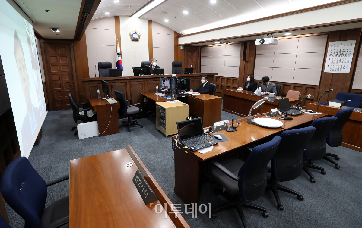 신종 코로나바이러스 감염증(코로나19) 여파로 전국 법원들이 휴정기에 들어간 가운데 4일 오후 서울 서초구 서울고등법원에서 코로나19 대응 방안으로 원격영상재판이 시행되고 있다. 사진공동취재단