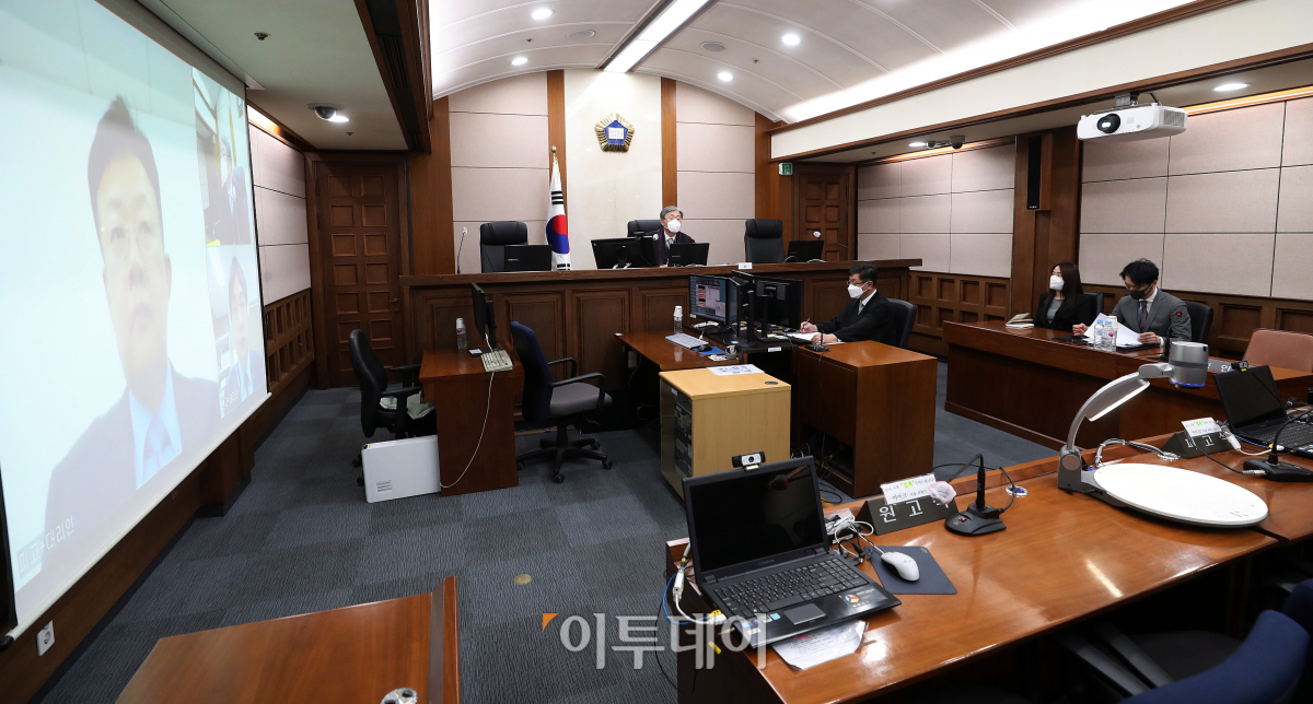 신종 코로나바이러스 감염증(코로나19) 여파로 전국 법원들이 휴정기에 들어간 가운데 4일 오후 서울 서초구 서울고등법원에서 코로나19 대응 방안으로 원격영상재판이 시행되고 있다. 사진공동취재단