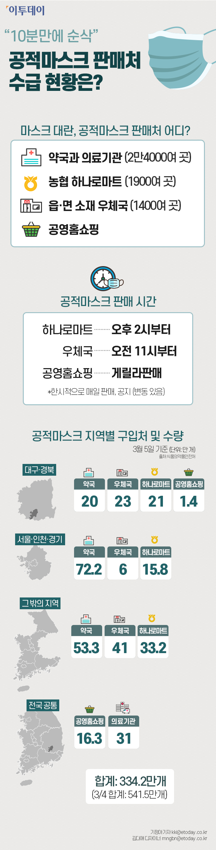 [인포그래픽] "10분 만에 순삭"…공적마스크 판매처 수급 현황은?