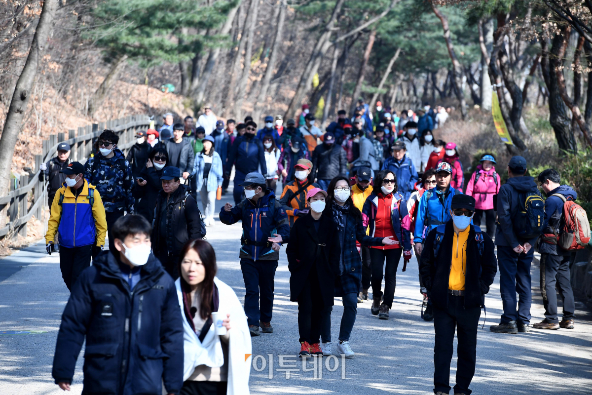 서울 낮 최고기온이 17도를 기록하는 등 전국이 올들어 가장 포근한 날씨를 보인 8일 서울 관악산 등산로가 시민들로 붐비고 있다.