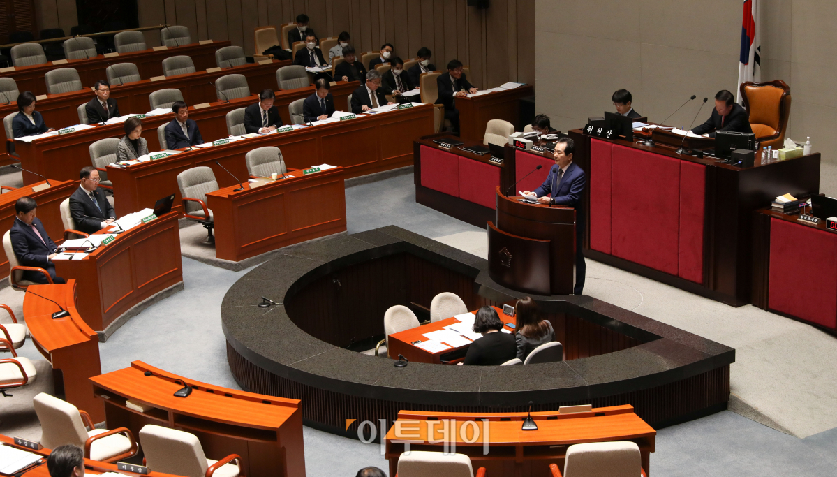 정세균 국무총리가 11일 서울 여의도 국회에서 열린 신종 코로나바이러스 감염증(코로나19) 대응 추경안 심사를 위한 예산결산특별위원회 종합정책질의에서 제안설명을 하고 있다.