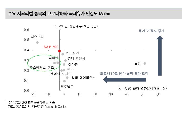 그러면서도 “다만 시크리컬 업종 접근은 신중할 필요가 있는데, 코로나19와 국제유가 급락으로 부정적 실적 전망이 예상되고 불활실성이 언제 해소될지 알 수 없어 관련 노이즈가 장기화될 수 있다”고 짚었다.