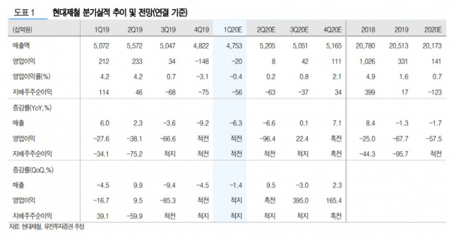 방민진 유진투자증권 연구원은 “이번 1분기 연결기준 매출액은 전년 동기 대비 6.3% 감소한 4조7500억 원으로 영업이익은 적자 전환할 전망”이라고 말했다.