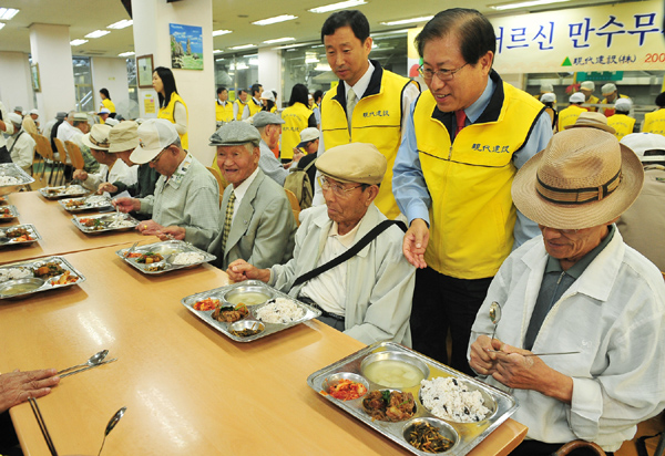 이종수 사장 내외를 비롯해 임원 내외, 현대건설 주니어보드, 현지회 등 자원봉사자 100여명으로 구성된 이날 행사에는 이웃 어르신 2000여명을 대상으로 직접 식사를 대접하고 떡을 나눠주는 봉사활동을 실시했다.