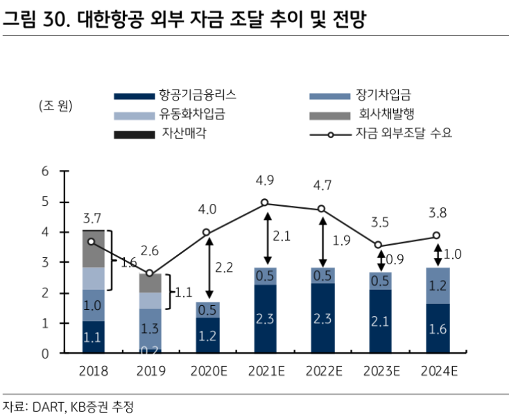 나아가 “올해 외부에서 조달해야 하는 자금은 평년보다 늘어날 것”이라며 “자본 보충이 없다면 부채비율이 급등해 충분한 외부 자금 확보에 불리할 수 있다”고 진단했다.