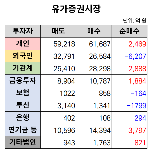반면 개인과 기관은 매수세를 이어갔다. 개인은 2469억 원을, 기관은 2888억 원을 각각 순매수했다.