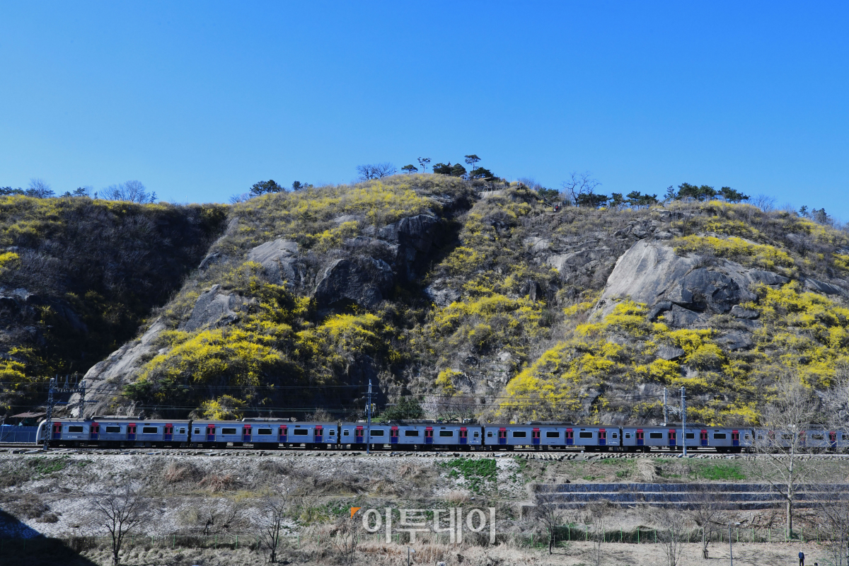 전국이 완연한 봄 날씨를 보인 22일 서울 성동구 응봉산에 만개한 개나리가 계절의 정취를 전하고 있다.