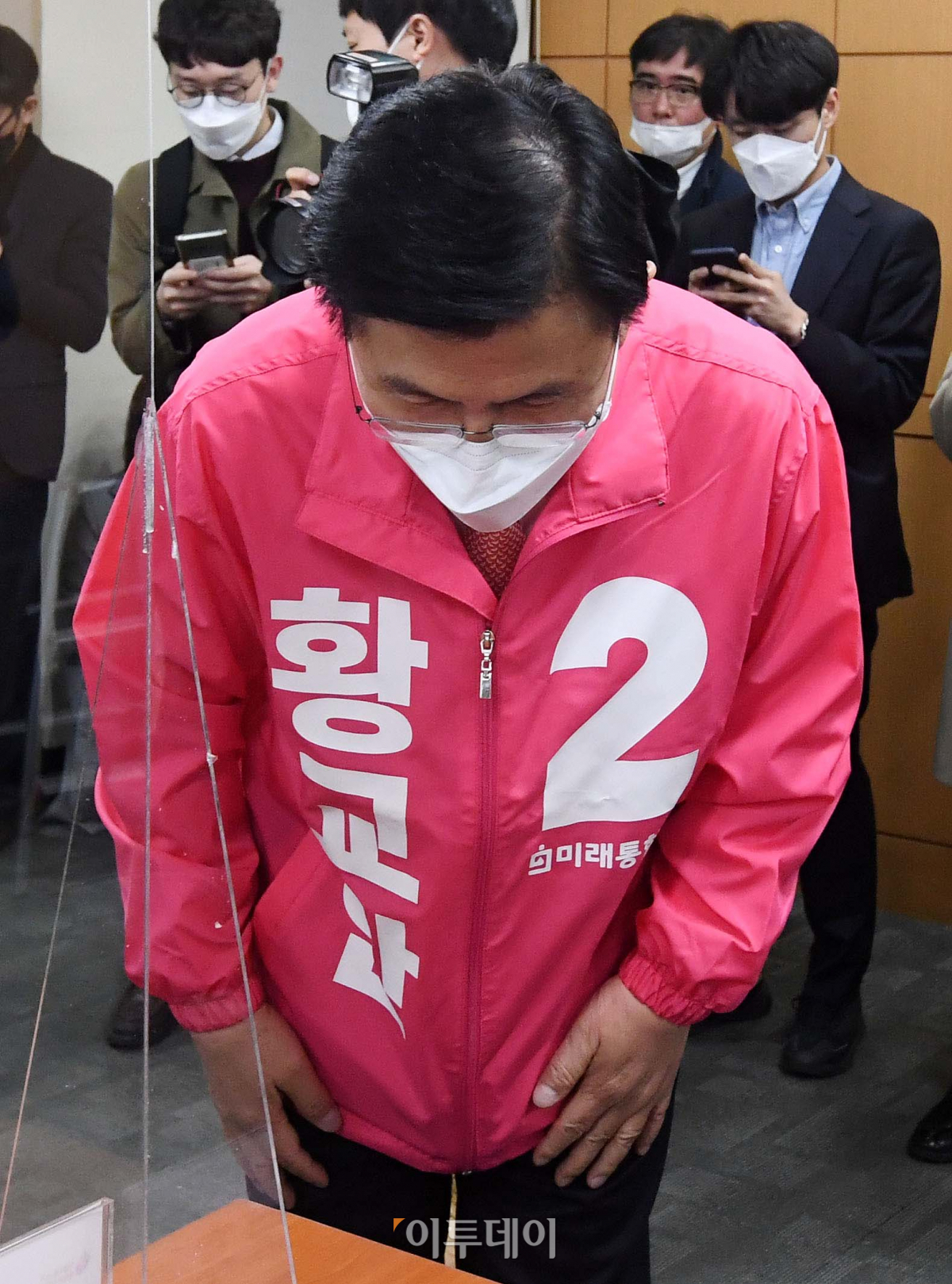 21대 총선에서 서울 종로에 출마하는 황교안 미래통합당 후보가 26일 서울 종로구선거관리위원회에서 후보자 등록을 마친 뒤 인사하고 있다.