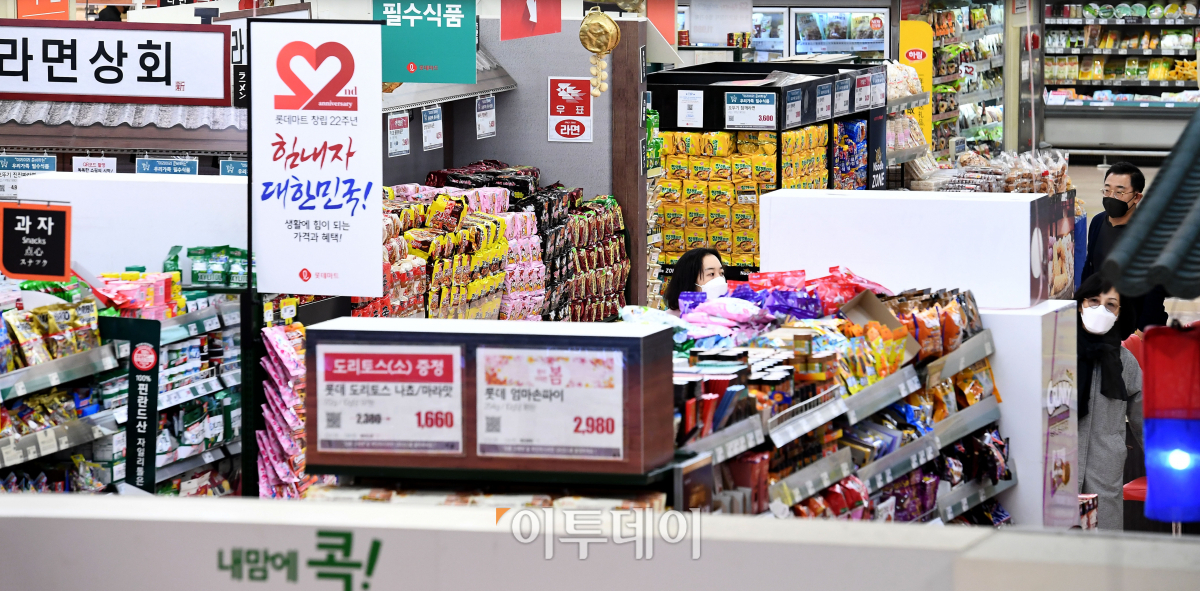 신종 코로나바이러스 감염증(코로나19)으로 외출을 자제하면서 식재료 소비가 증가해 가공식품과 축산물 가격이 올랐다. 2일 통계청의 소비자물가 동향에 따르면 3월 축산물은 지난해 같은 기간 대비 6.7% 올랐고, 가공식품도 1.7% 상승했다. 하지만 외식·여행 등 서비스물가 상승률은 0.5%로, 1999년 12월(0.1%) 이후 최저였던 2월(0.4%)에 이어 낮은 수준에 머물렀으며, 호텔숙박료는 5.2% 하락해 2010년 8월(-9.4%) 이후 최저치를 기록했다. 이날 서울의 한 대형마트에서 시민들이 가공식품을 살펴보고 있다.