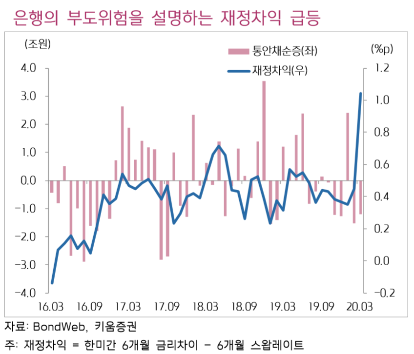 그는 “순이자마진 하락, 수수료 감소 등으로 은행의 이익 체력이 약화된 상황에서 해외 사모펀드 투자로 해외 위기의 전염 가능성이 높은데다 한계채무자가 늘어난 상황에서 코로나19가 건전성까지 악화할 가능성을 배제할 수 없기 때문”이라고 분석했다.