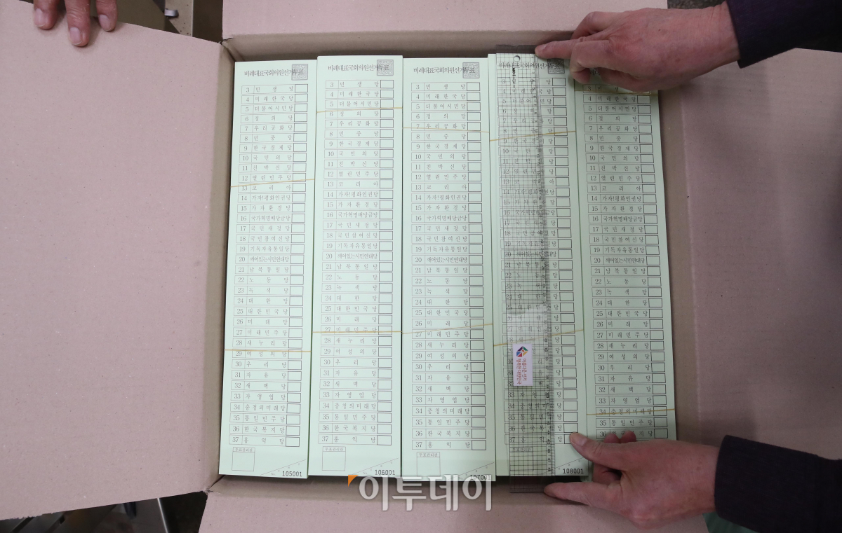 6일 서울 중구 을지로의 한 인쇄소에서 제21대 국회의원선거 투표지가 인쇄되고 있다.