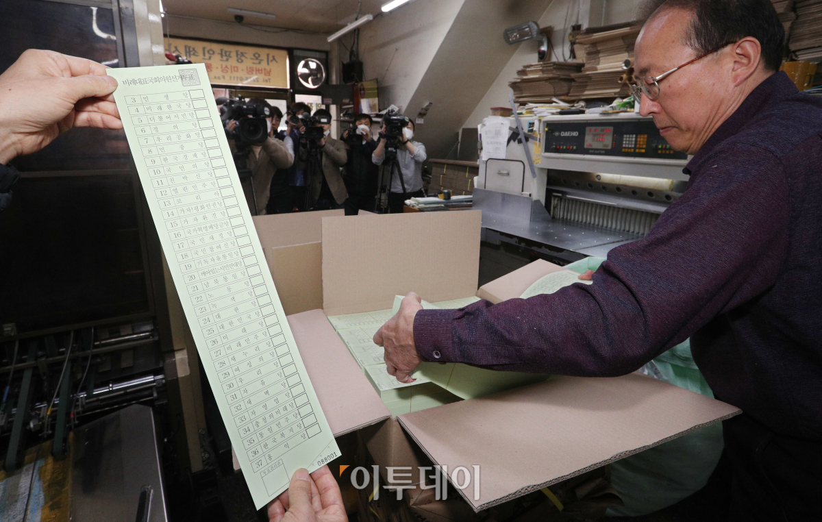6일 서울 중구 을지로의 한 인쇄소에서 제21대 국회의원선거 투표지가 인쇄되고 있다.