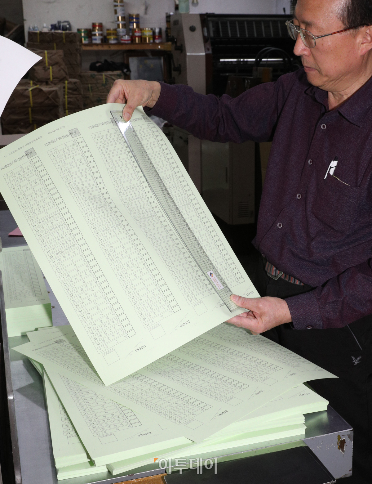 6일 서울 중구 을지로의 한 인쇄소에서 제21대 국회의원선거 투표지가 인쇄되고 있다.