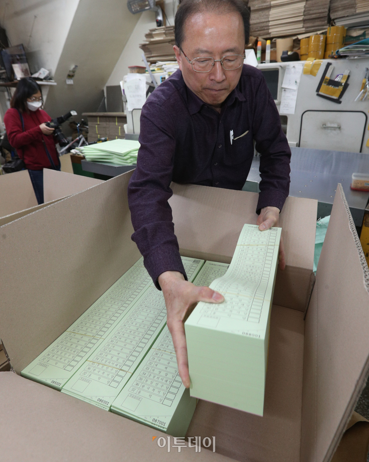 6일 서울 중구 을지로의 한 인쇄소에서 제21대 국회의원선거 투표지가 인쇄되고 있다.