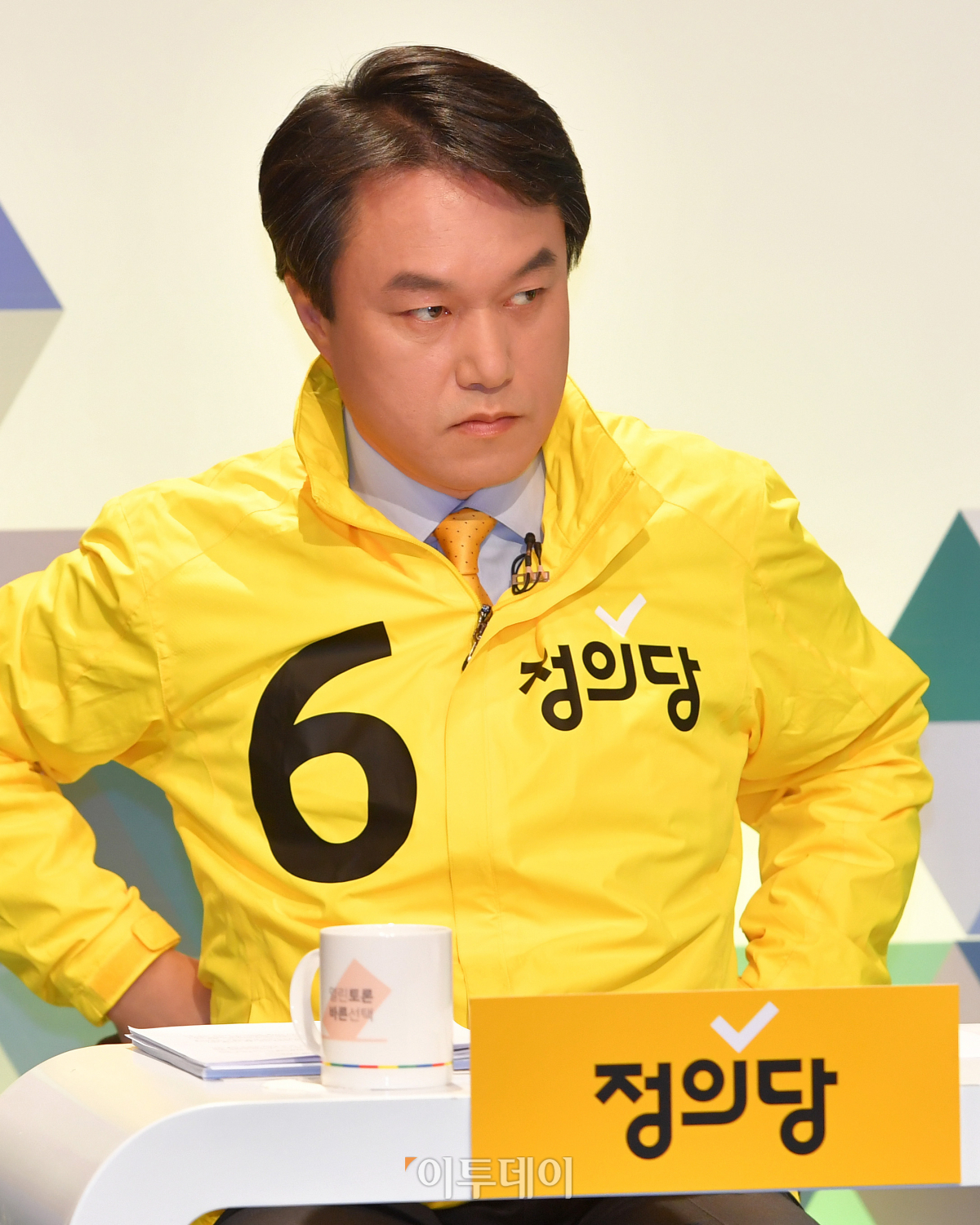 제21대 국회의원 선거 비례대표 후보자 토론회가 6일 오전 서울 상암동 MBC에서 열렸다. 김종철 정의당 비례대표 후보(16번)가 토론 준비를 하고 있다. 국회사진취재단