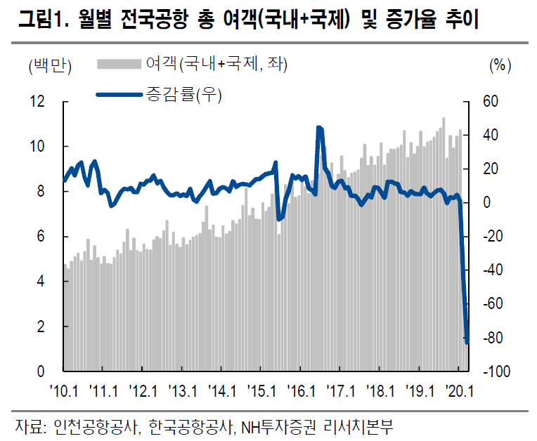 정연승 연구원은 “항공운송은 본격적인 여객 수요 절벽에 진입했다”며 “3월 국제선 여객선은 전년 대비 91% 감소했고 2분기 내에 수요 회복을 기대하긴 어렵다”고 말했다.