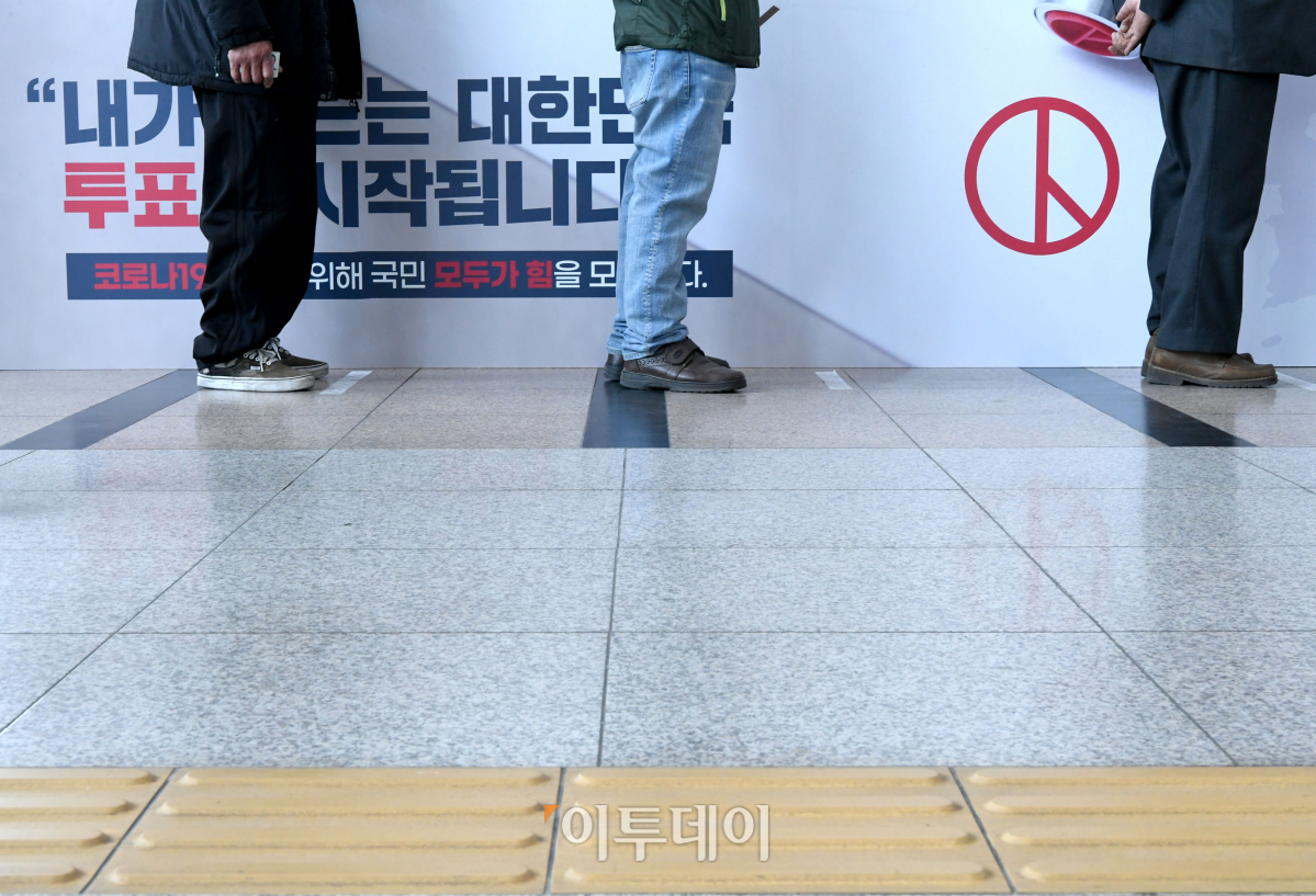 제21대 국회의원선거 사전투표가 시작된 10일 서울 용산구 서울역에 설치된 남영동 사전투표소에서 투표가 진행되고 있다. 유권자라면 오는 11일까지 별도의 신고 없이 전국(3508곳) 어느 사전투표소에서나 사전투표할 수 있다. 투표 시간은 오전 6시부터 오후 6시까지로 주민등록증, 여권, 운전면허증 등 관공서 또는 공공기관이 발행한 사진이 붙은 신분증을 지참해야 한다.