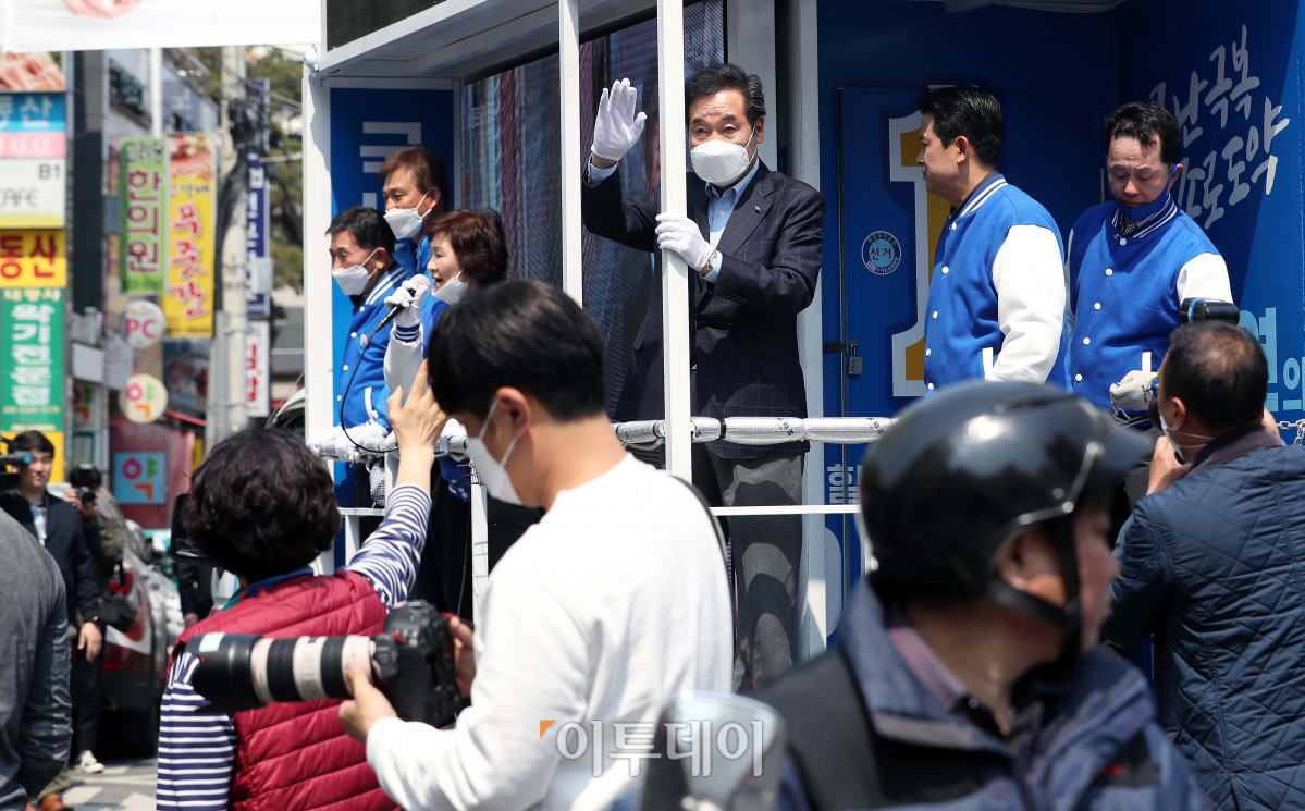 21대 총선 종로구 당선인인 이낙연 더불어민주당 상임선대위원장이 16일 서울 종로구 숭인동의 한 거리에서 시민들에게 인사하고 있다.