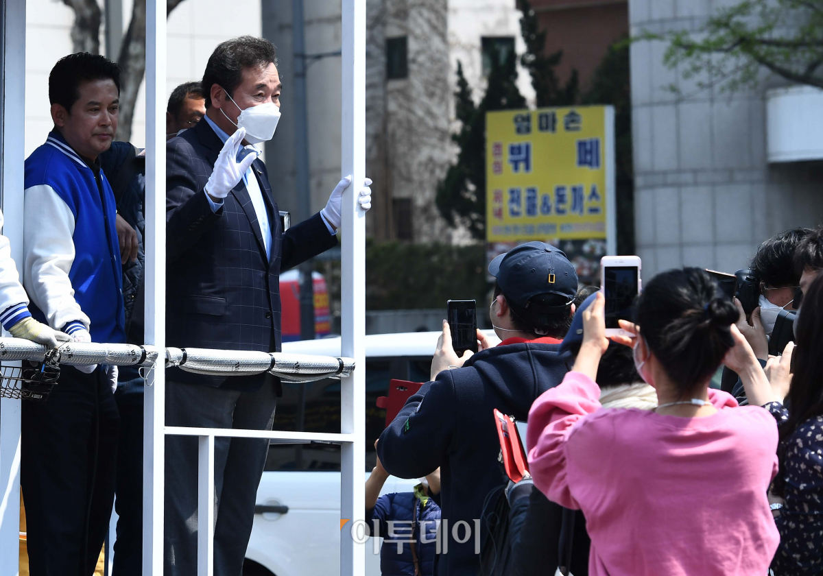 21대 총선 종로구 당선인인 이낙연 더불어민주당 상임선대위원장이 16일 서울 종로구 숭인동의 한 거리에서 시민들에게 인사하고 있다.