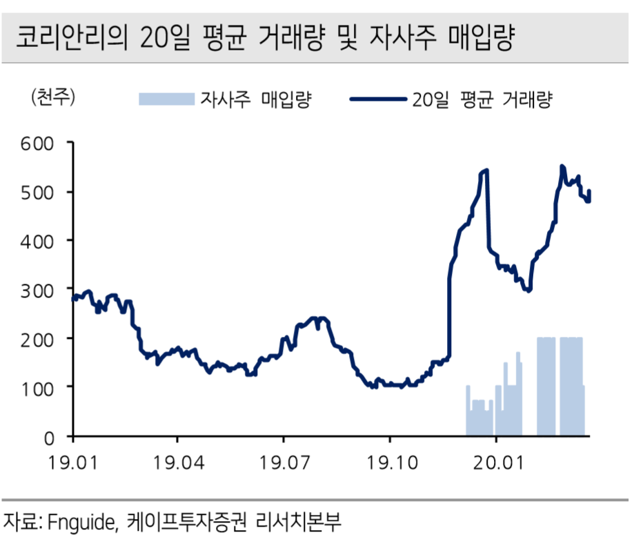 김도하 연구원은 “코리안리는 200만 주의 자기주식을 장내 매수할 것을 공시했다”며 “지난해 실적 정상화에도 불구하고 밸류에이션 회복이 나타나지 않자 자사주를 매수한 것으로 보인다”고 말했다.
