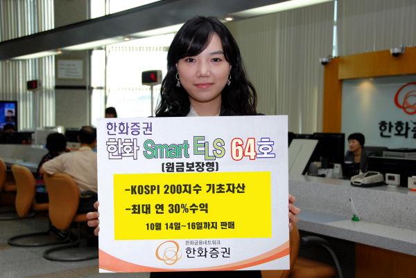 '한화 스마트 ELS 64호'는 1년 만기 원금보장형 상품으로 만기 수익률이 0%미만인 경우 원금보장, 0%이상 30%이하이면 원금과 만기 지수상승률만큼 수익을 지급한다.