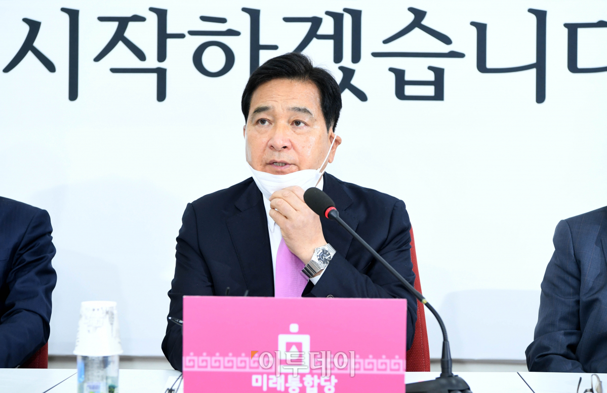 심재철 미래통합당 대표 권한대행이 22일 서울 여의도 국회에서 최고위원회의 브리핑을 하고 있다. 통합당은 이날 회의에서 김종인 전 총괄선대위원장을 비상대책위원장으로 하는 비대위 체제로 전환하기로 결정했다.