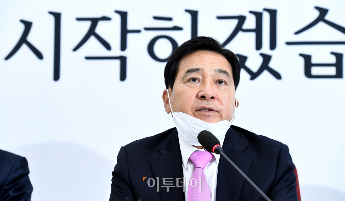 심재철 미래통합당 대표 권한대행이 22일 서울 여의도 국회에서 최고위원회의 브리핑을 하고 있다. 통합당은 이날 회의에서 김종인 전 총괄선대위원장을 비상대책위원장으로 하는 비대위 체제로 전환하기로 결정했다.