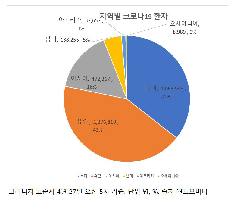 미국과 유럽은 전 세계 코로나19 확진자와 사망자의 약 80%를 차지한다. 그만큼 상황이 심각하지만 그동안의 이동 제한에 따른 실업대란 등 경제적 충격도 만만치 않아 궁여지책으로 경제 조기 정상화에 나서고 있다.