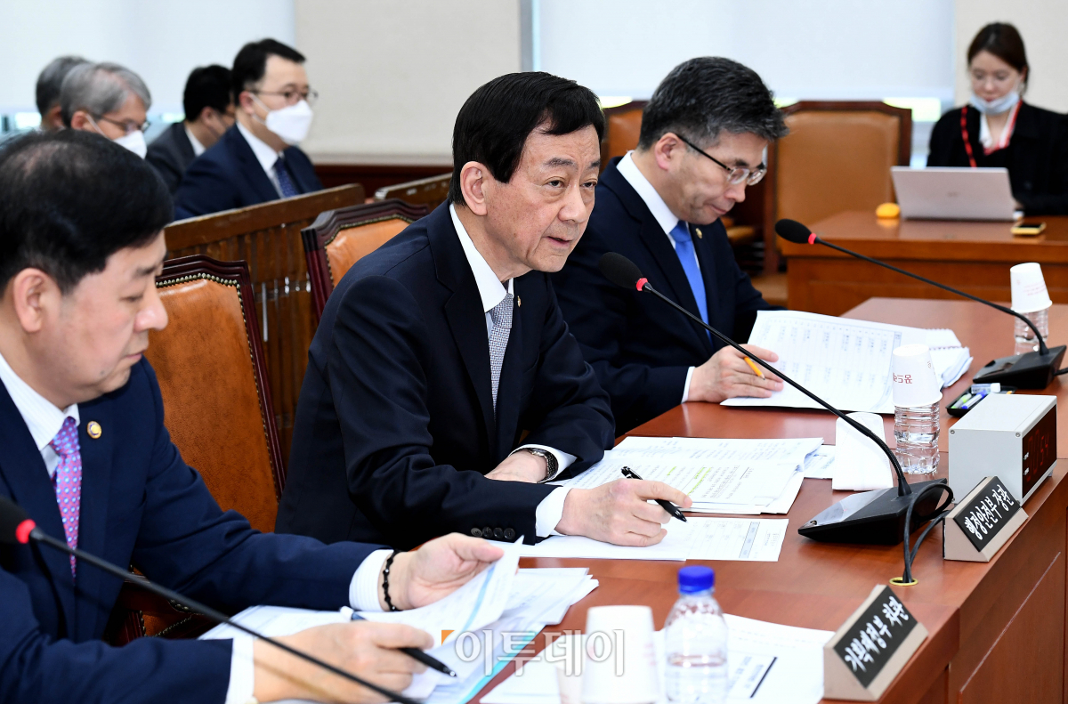 진영 행정안전부 장관이 27일 서울 여의도 국회에서 열린 행정안전위원회 전체회의에서 의원의 질의에 답하고 있다.