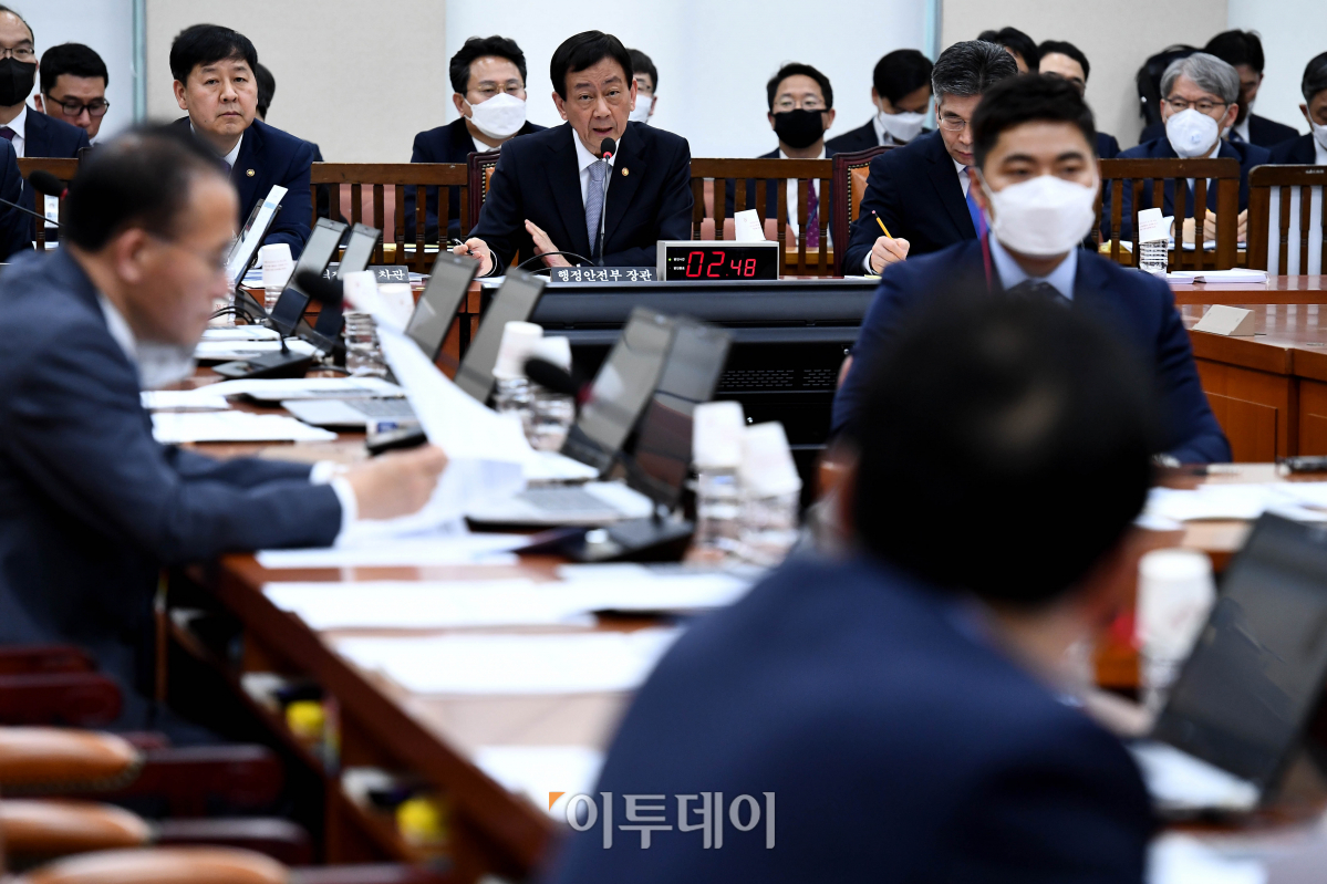 진영 행정안전부 장관이 27일 서울 여의도 국회에서 열린 행정안전위원회 전체회의에서 의원의 질의에 답하고 있다.
